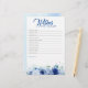 Blue flowers baby shower game card
