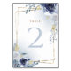 blue flowers faux gold foil Baptism Table Number
