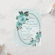 Unique wedding invitation featuring romantic blue flowers and green leaves on a beautiful oval geometric frame.