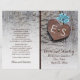 Blue flowers & heart on wood wedding program