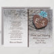 Blue wild flowers, metallic rusted heart with monogram on wood rustic wedding ceremony and party folded program featuring a brown rusted metallic heart with initials nailed on weathered grey barn wood board and three aqua blue wild flowers. This monogrammed floral wedding template design is fully customizable and is part of a wedding set or collection perfect for a summer or fall country barn wedding. You will have to fold it in the center. Choose only this type of paper-value as it folds well.