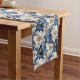Blue Flowers Ivory Elegant Dining Table Runner