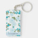 Blue Flowers, Pattern Of Flowers, Your Name Keychain