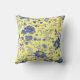Blue Flowers Yellow Birds Throw Pillow