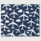 Blue flying airplanes aircraft pattern wrapping paper