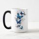 Flying Blue Butterflies morpho and white butterflies on a light abstract background. Morpho. Design with blue butterflies morpho.