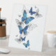Flying Blue Butterflies morpho and white butterflies on a light abstract background. Morpho. Design with blue butterflies morpho.