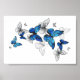 Flying Blue Butterflies morpho and white butterflies on a light abstract background. Morpho. Design with blue butterflies morpho.