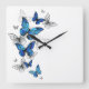 Flying Blue Butterflies morpho and white butterflies on a light abstract background. Morpho. Design with blue butterflies morpho.