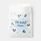 Blue Flying Ghost Halloween Baby Shower Favor Bag, feature design with cute spooky ghost flying and "Oh Baby!" wording in blue, black and white color theme. perfect for Halloween Fall Autumn Baby Shower party, baby expected in October.