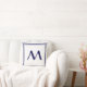 Stylish And Funky Monogram M Letter Dark Royal Navy Blue Frames Minimalistic Cushion / Throw Pillow to add to your home / office / business decor collection. A cool gift / present idea for all who love custom design items, positive vibes, organic theme, minimalism etc. Each side is different. Holidays, happy, baby shower, boy, girl, birthday etc. Change the background color to suit your own needs, taste and style. Add your name / surname / company / brand name letter to personalize.