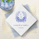 Blue French Floral Crest Wreath Monogram Wedding Napkins