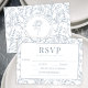 Blue French floral monogram wedding RSVP cards