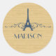 Elegant and chic French Flourish Stickers featuring a faux woodgrain look background and an Eiffel Tower design in dark blue adorned with cascades of stylish swirls. This girly and trendy design is easy to customize with the personalized text of your choosing. Click "Customize It" to find more personalization options.