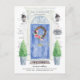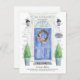 Announce your new address with our stylish announcement featuring a blue front door, welcome mat, slate sign, topiaries and a floral wreath set on a gray brick background.