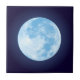 Decorative tile featuring a bright blue full moon on a midnight blue background.
