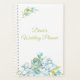 Blue Garden Flowers Wedding Planner. This is designed with a cluster of blue watercolored flowers including roses, hydrangea and foliage.