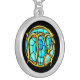 Blue Gemstone Colored Virgo Symbol Silver Plated Necklace