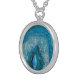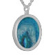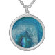 Blue Geode Rock Mineral Agate Crystal Image Silver Plated Necklace