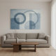 Calm Bedroom: Use this abstract shapes print to create a peaceful and sophisticated retreat. Its soothing blue hues are known to promote rest and clarity, making it ideal bedroom wall art.