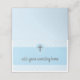 Blue Geometric Pattern With Gray Cross Baptism Place Card