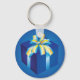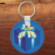 Blue Gift Box with Yellow and Aqua Ribbon Keychain