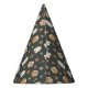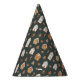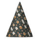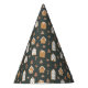 Whimsical Christmas theme birthday party hat featuring illustration of gingerbread houses with blue accent.