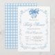 Blue Gingham and Bow Baby Shower Boy Invitation