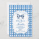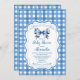 You can pick to download your custom Blue Gingham And Bow Invitation in any of the following 4 file types: PNG, JPG, Standard PDF, and Print PDF. These 4 file formats have been selected so they cover all your inviting needs. PNG and JPG are great for sending your invitations online. All of these file formats are great if you want to print your invitations yourself. However, having unlimited downloads allows you to download all four formats for maximum versatility. You can even apply your digital download design to other popular products on Zazzle.