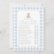 Invite friends and family to participate in a game of 'Mommy or Daddy' with this elegant blue gingham teddy bear baby shower game card.