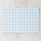 light blue gingham birthday party placemats perfect for a farm theme birthday. Matches our Cow birthday party designs.