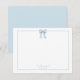 Personalized cute watercolor gingham bow 'from the nursery of' Baby boy blank flat thank you note card with blue border.