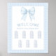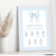 Explore sophistication with our elegant preppy baby boy shower seating chart sign poster, adorned with a charming baby blue bow ribbon set against a backdrop of classic gingham pattern. Perfect for welcoming guests to your celebration with style and refinement.