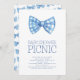 Blue Gingham Bow Tie Baby Shower Picnic Invitation