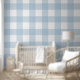 This classic and simple large scale light blue check pattern is the perfect touch for a nursery or any farmhouse theme room. Inspired by a classic gingham plaid, this cute baby blue wallpaper matches with a variety of themes and makes a great accent wall for a baby boy's bedroom, a kid's room, playroom and more. Find more colors and coordinating styles of this gingham design in the collection by Lea Delaveris Design.