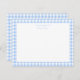 Cute pale blue and white gingham check personalized "from the nursery of" flat thank you note.