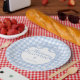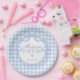 Blue Gingham Coquette Bow Baptism Paper Plates
