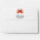 Blue gingham design on inside with crab illustration and return address on back flap.