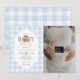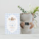 Blue Gingham Elegant Teddy Bear Baby Shower Photo Invitation