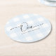 Blue Gingham First Birthday Drink Coaster