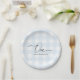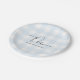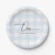 These first birthday paper plates feature a timeless gingham design with a modern hand-lettered font.