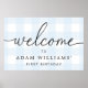 Blue Gingham First Birthday Welcome Sign