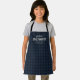 Custom kitchen apron feature classic dark blue and black gingham check with light gray personalized text of future grill master and name . Great personalized bbq apron for little men. These father son matching grill aprons make a great gift for Father's Day, Grandparent's Day, birthdays and other special occasions.