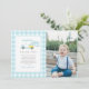 Blue Gingham Golf Boy 1st Birthday Photo Thank You Card