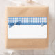 A cute label with blue gingham, buttons and bow. Add customized text or order blank. Perfect to organize craft, sewing or scrapbook supplies.