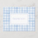 A classic blue gingham watercolor with a laurel crest for initial monogram thank you post card