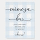This blue gingham boy baby shower mimosa bar sign is perfect for a simple baby shower. The modern design features a timeless blue gingham design and modern fonts. The script text heading is an image that cannot be edited. The heading image can be resized to fit any poster size. All of the other text is fully editable. For more advanced customization of this design, simply select the "Customize It" button above.