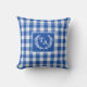 Blue Gingham Monogram Crest Throw Pillow