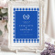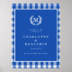 Blue Gingham Monogram Crest Wedding Welcome Poster