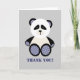 A thank you card featuring an illustration on the front of a panda bear with blue gingham paws and ears. Text says "Thank You!" Inside is blank.